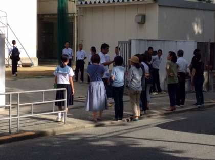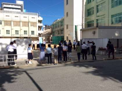 5月から始まりました今学期のあいさつ運動は、今日が最後になりました。今日もたくさんの保護者の方々にお越しいただき、子どもたちを見守っていただきました。前の公園で鳴くセミにも負けないくらいの大きな声であいさつをする生徒にお声掛けいただきありがとうございました。また、二学期もお世話になりますが、よろしくお願いいたします。