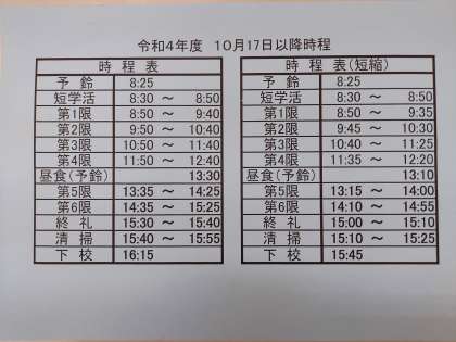 10/13 「10/17(月)からの時程変更について」