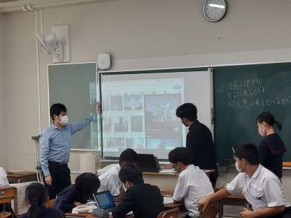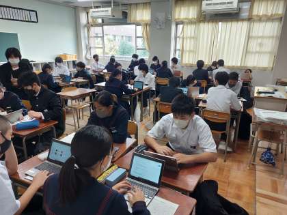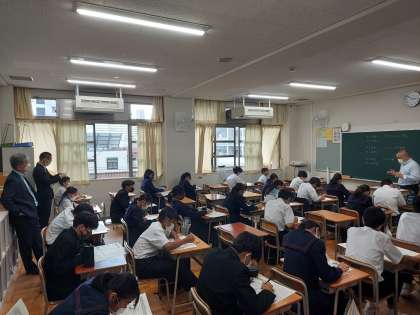 大阪市教育センターから、センター長先生、総括指導主事先生等の先生方が来校され、授業参観とカリキュラムの意見交換をしました。