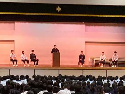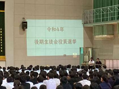 後期生徒会役員の選挙を行いました。選挙の前に、立候補者のみなさんが学校生活をより良くしたいと演説しました。