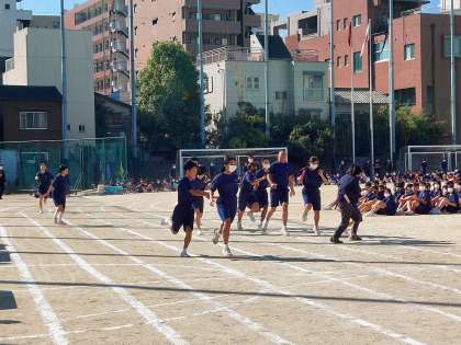 暖かい日差しが降り注ぎ、気持ちのいい気候のなか、明日の体育大会の本番に向けて、今日は予行練習を行いました。