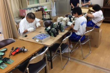 8月3日(月)「なかよし学級」の生徒二人が参加する中、NPO法人「ダ・カー歩」の皆さんの協力のもと、作業所体験ができました。「なかよし学級」の生徒の進路について考えるきっかけをつくるとともに、小中の教員が合同で、特別支援学級のみなさんの進路について研修を行いました。NPO法人「ダ・カー歩」の末浪理事長、福山さん、地域コーディネーターなどにもご協力いただき、障がい者施設からの支援について、また、地域社会からの支援について、そして、学校教育の立場から特別支援教育について研修をお行いました。
