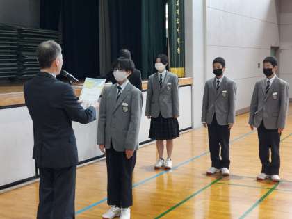 絵画、写真、書写、美術の作品で表彰を受けた生徒のみなさんです。