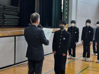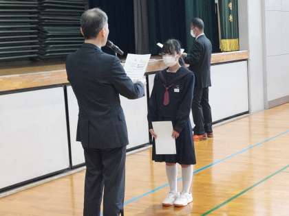 修了式のあと、賞状伝達を行いました。
