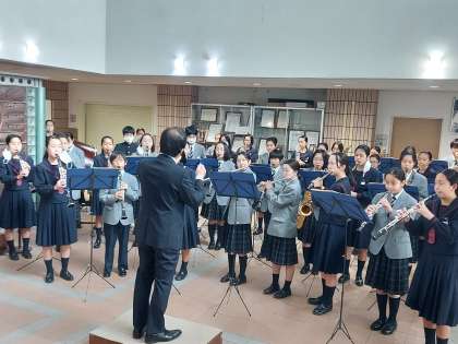 吹奏楽部の盛大な演奏と教職員でお迎えしました。