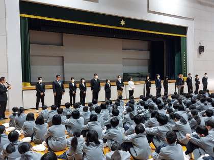 また、学級担任など各学年の先生等が校長先生から紹介されました。