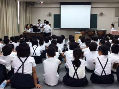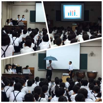夏休み前に6年生に情報機器についてのアンケートを取り、それを夏休み中に集計・分析をして6年生に結果を説明しました。半数以上がLINEをしている結果に、驚きました。