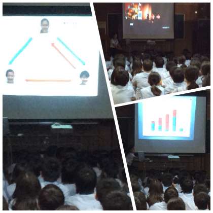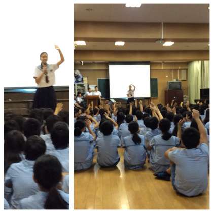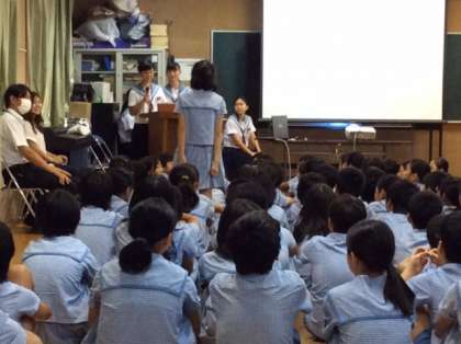 生徒会による出前授業は、パワーポイントを使って説明する等、小学生にとっても分かりやすくとても素晴らしい発表でした。