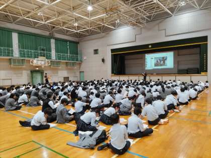 本日、1年生では、一泊移住事前指導を行いました。中学校での初めての大きな行事。子どもたちは、先生の説明に真剣に耳を傾けていました。お天気に恵まれることを祈っています。