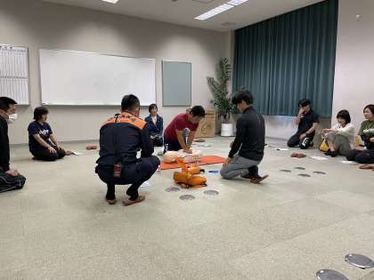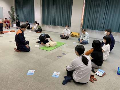 西区の消防隊員、救急隊員の方々に来校いただき、救急救命講習会を開きました。