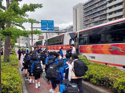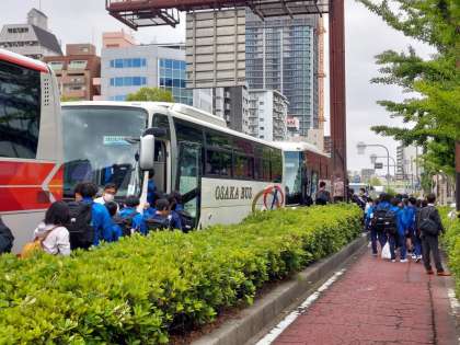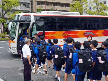 バスに乗車し、滋賀県の希望ヶ丘青年の城に向けて出発します。