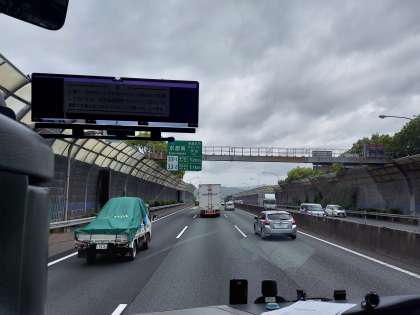 京都南を通過しました。少しずつ交通量が増えてきており、到着予定が少し遅れるかも知れません。