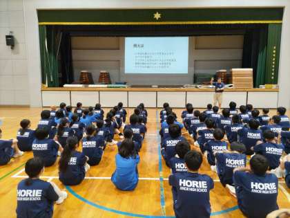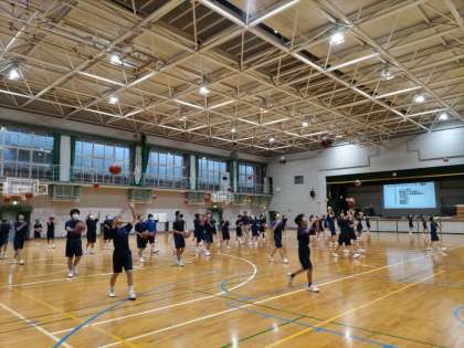 2年生の体育の授業のようすです。コーディネーショントレーニングという、運動神経の成長を促すプログラムに取り組んでいる場面です。子どもたちは、楽しそうにチャレンジしていました。