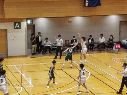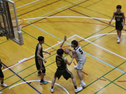 序盤は本校がドライブやスリーポイントシュートでリズムをつかみリード。