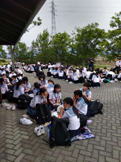 北アルプスが見える場所で、みんなで昼食です。いただきます。