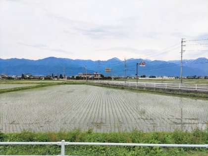昼食を美味しくいただき、体験活動の場所へと移動しています。のどかな田園風景が目に優しいです。