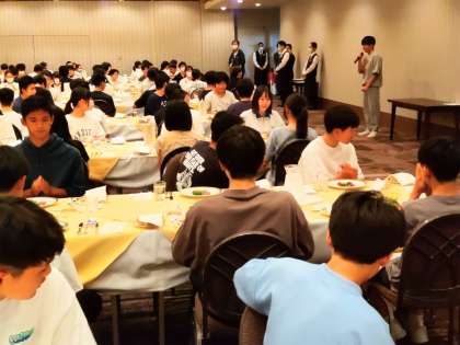 体験活動が終わり、おなかもペコペコです。本日の夕食は、洋食のコース料理です。