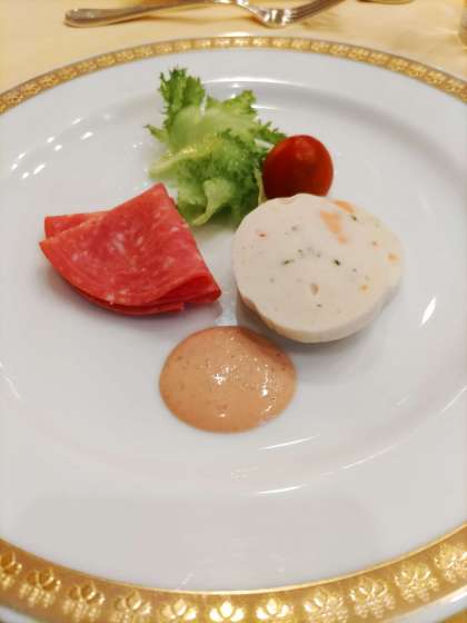 ・フィッシュロールのテリーヌとソフトサラミ サラダ盛り合わせ