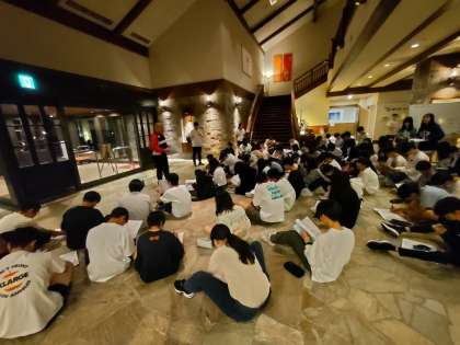レクリエーション大会が終わり、班長会議が始まりました。このあと就寝準備、10時30分消灯となります。明日は6時30分起床です。