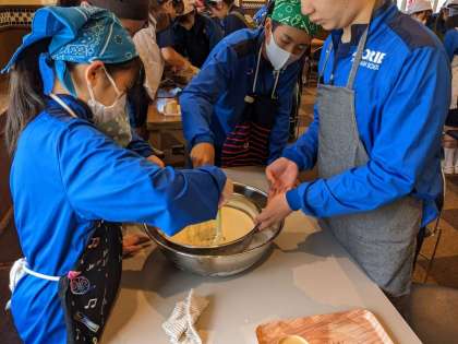 アイスクリーム作りのようすです。完成まで、仲間と協力しあいました。