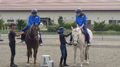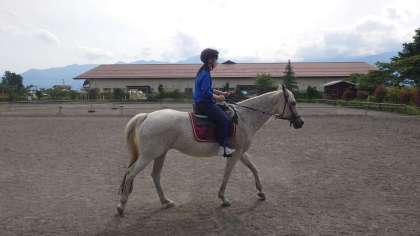 体験活動、乗馬です。はじめは怖いけど、乗ってみると何となくいい感じ。