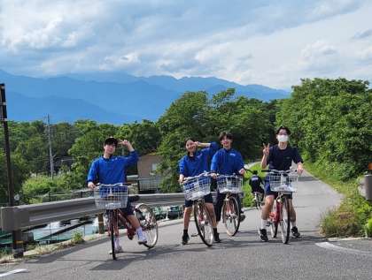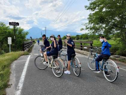 体験活動、サイクリングの様子です。少し暑く感じましたが、爽やかな風を感じながら走りました。