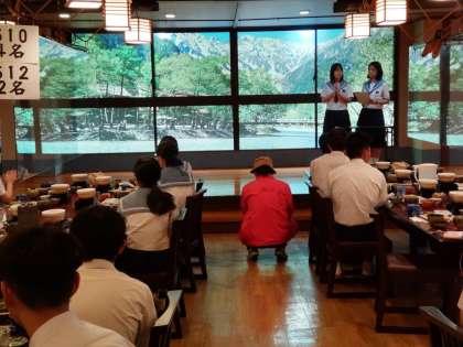 朝食後、退館式を行いました。これから高山市内に向けて出発です。