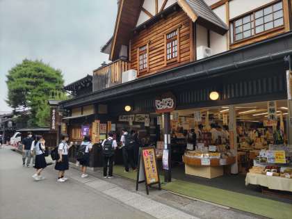 お土産を買ったり、食べ歩きをしたり。天気は曇り空ですが、散策にはもってこいです。