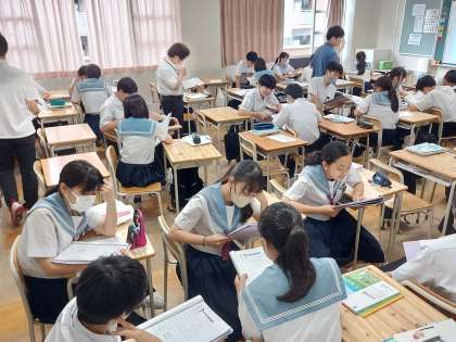 大阪市教育センターからスクールアドバイザーの先生にお越しいただき、英語の若手教員の授業参観とご指導をいただきました。
