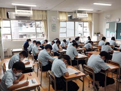 数学の問題をよく読んで、一生懸命に正解を導き出そうとしています。
