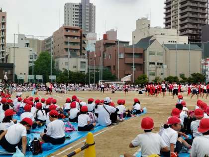 本日は、堀中・堀小の共用グラウンドで堀江小学校の運動会が行われています。子どもたちは元気いっぱいです。