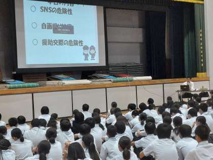 西警察の少年係の署員さんに来校いただき、2年生で、非行防止教室を開催しました。