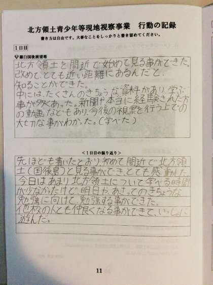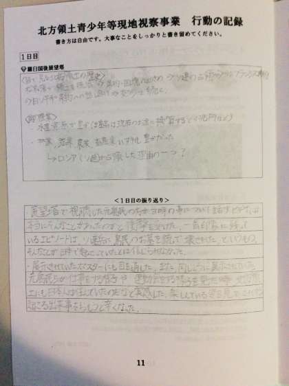 視察参加生徒の皆さんは、1日の終わりに振り返りを記入し、その日学んだことを事後の活動に役立たせるようにしています。