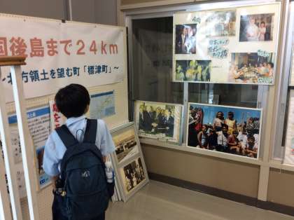 最初に訪れた北方領土館では、昔の北方四島の様子を写した写真や、領土問題の歴史的経緯経緯を説明した資料を見学しました。