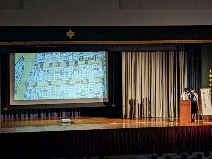 2年生の「堀江の歴史散策」の発表と合唱です。