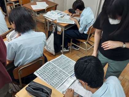 1年生の美術の時間です。文字の「レタリング」をしています。
