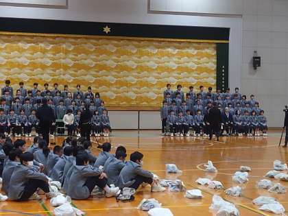 5限目は全学年、学級写真の撮影です。雨はあがりましたが、グラウンドコンディションが悪く体育館での撮影となりました。