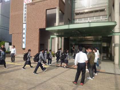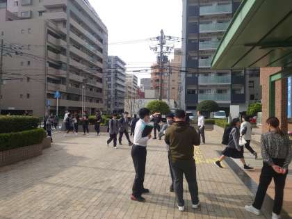 堀江中学校の生徒たちは、元気なあいさつととともに登校しています。