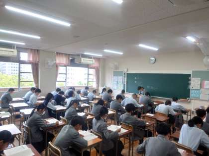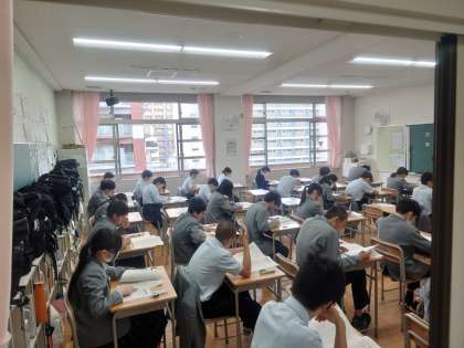 火曜日に行われた生徒質問調査に続き、本日は全国学力学習状況調査の国語と数学のテストが行われています。しっかりと問題を読んで、解答しています。最後まで頑張ってください。