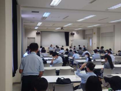 生徒会役員、各委員会の委員長、全クラスの学級委員長が一同に集まり、様々な議題について話し合いを行います。