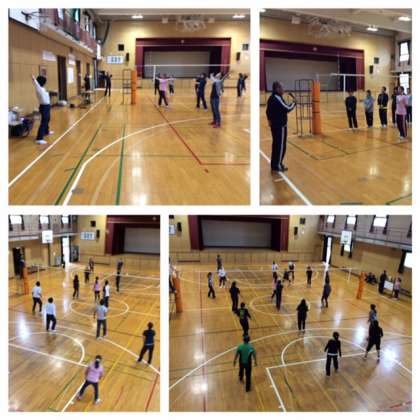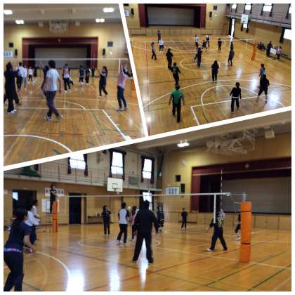 7日(土)、定例の11月PTA実行委員会のあと、厚生委員の皆さんのお世話で、各学年の保護者と教職員とでバレーボール大会を行いました。第1試合は、1年保護者チームと教職員チーム、第2試合は2年保護者チームと3年保護者チームの対戦でした。決勝は、2年保護者チームと教職員チームで、辛くも教職員チームが勝利に終わりました。どの試合も接戦で、白熱したゲームが展開されました。参加、応援の皆さま、ありがとうございました。