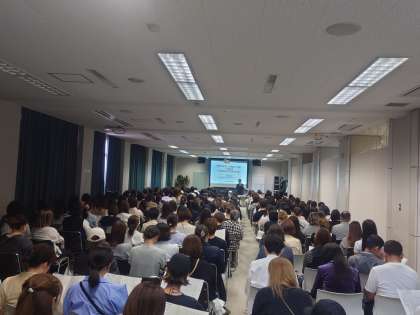 200席を超える数の椅子を準備していましたが、足らず急きょ別の部屋から椅子を運び入れました。入学して初めての大きな行事とあって、たくさんの保護者が校長先生からの話しと、学年主任からの説明に耳を傾けていました。