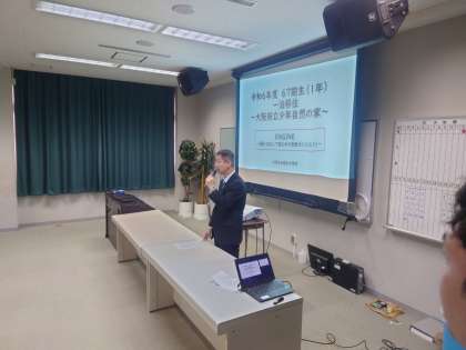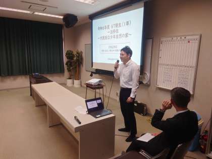 6階の大会議で1年生の保護者を対象とした、一泊移住の保護者説明会が行われました。