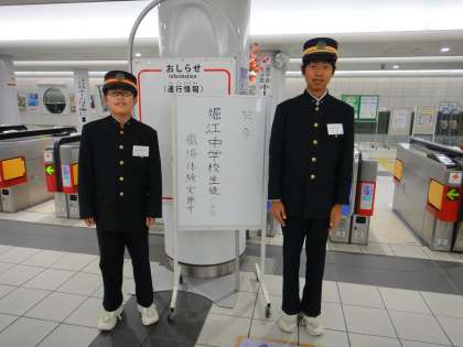 *地下鉄の駅では駅員さんの制服姿でお客様にごあいさつをしています。