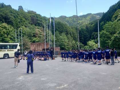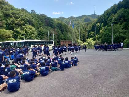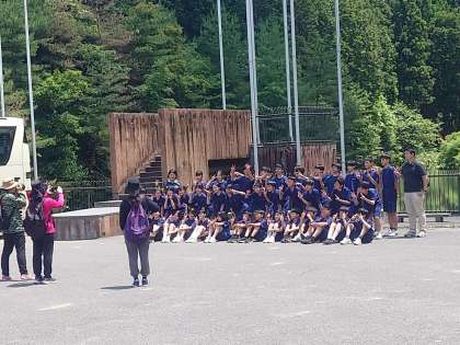 学級写真の撮影です。終えたら班別のオリエンテーリングに出発となります。