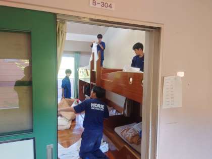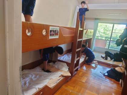 生活班ごとに入室しベッドメイクを行っています。このあと17時00分からの風呂と夕食までの時間は少し休憩です。