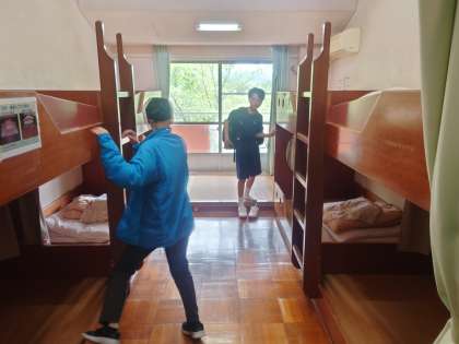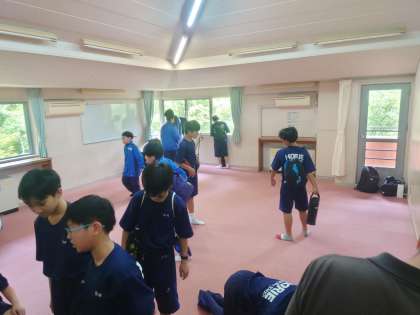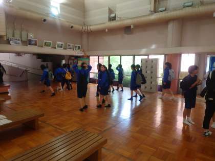清掃、野外炊飯と帰宅準備を終え、施設の方の点検をしていただいています。指示通りの片付けができ、一発合格したでしょうか。