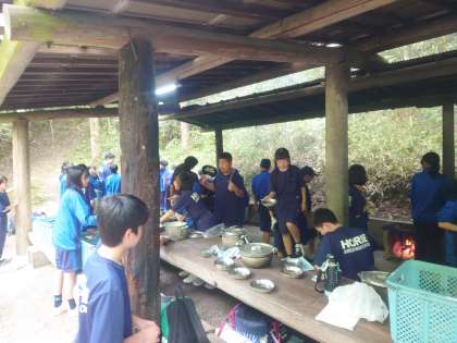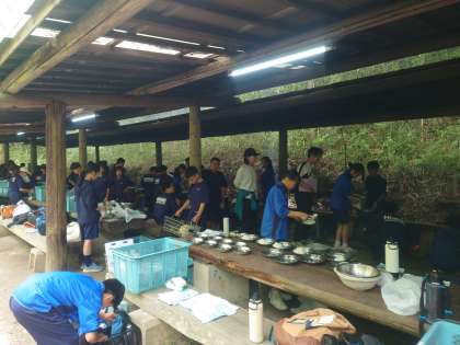 第3炊飯場の1組から3組の様子です。やっと完成しそろそろ食べ始めるところです!