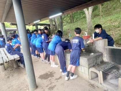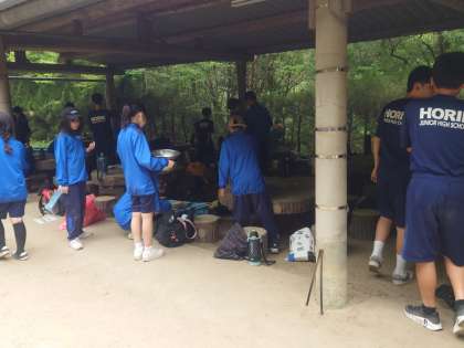 食べ終わった班から片付けに入っています。食器など施設の方の最終チェックが待っています。しっかりと磨いてくださいね!
