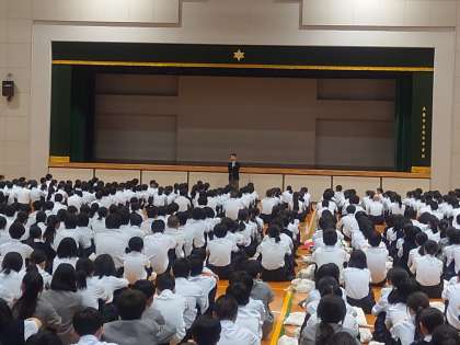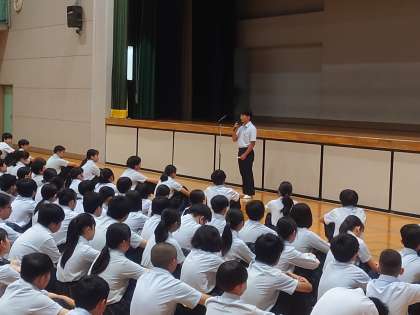 3年生が早くから学年集会をしていたこともあるかと思いますが、8時20分頃には全校生徒が整列を終え、集会がスタートしました。各学年大きな行事のある6月。その意識の高さが集合状態にもあらわれているのではないでしょうか。